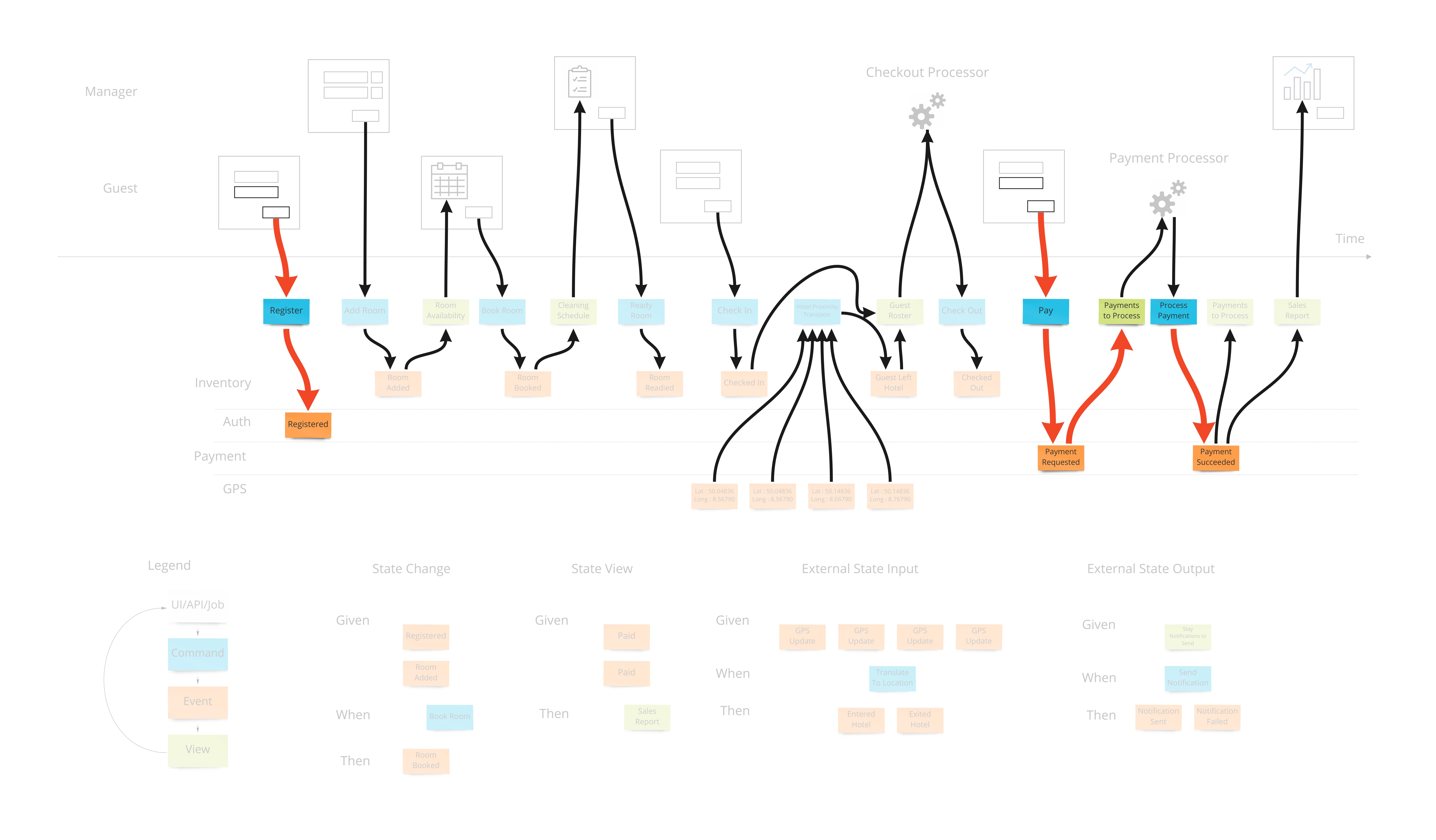 Most information systems must give an ability for a user to affect state of the system. In our example, we must allow the booking of a room to change the system so that we don’t over-book and when that person arrives at that future date, they have a room ready for them.